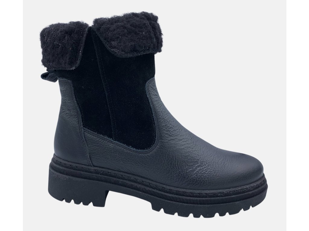Kožené polokozačky na masivní podrážce vytepleny příjemným kožíškem.