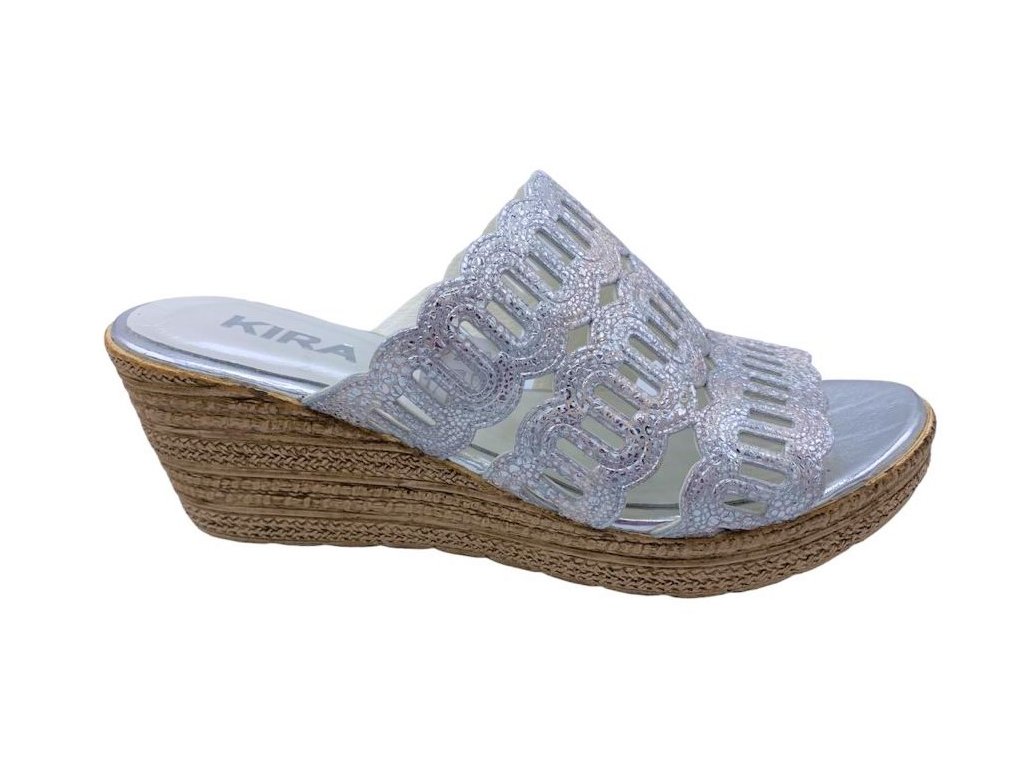 Dámské kožené pantofle na klínku Kira 336 stříbrné