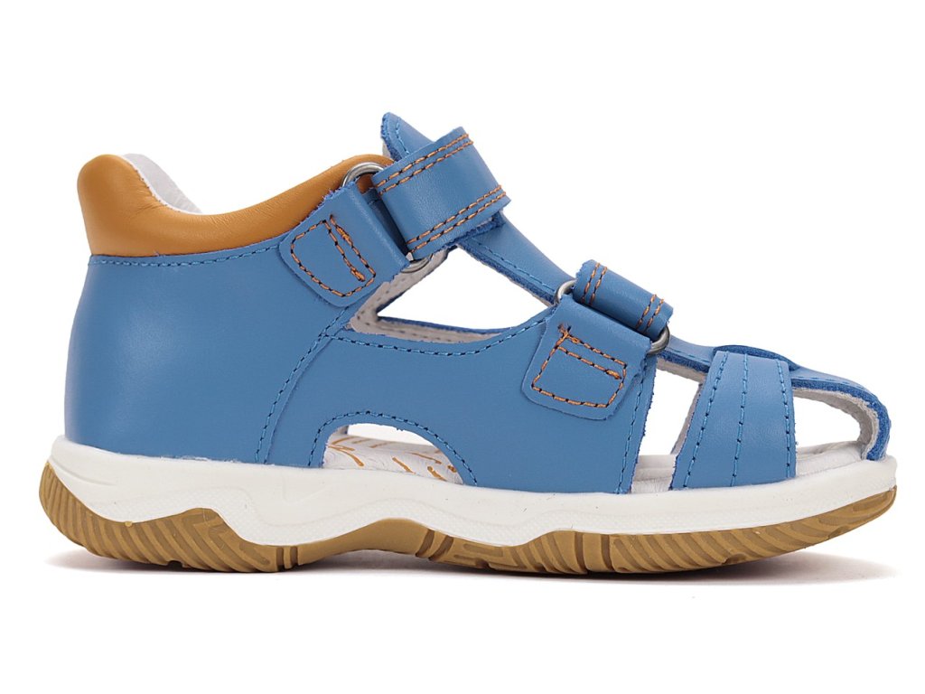Botičky jsou celokožené (kombinace hladké a broušené kůže) a zapínají se na dva pásky se suchým zipem. Sandálky jsou ideální dětskou obuví do teplých letních měsíců.