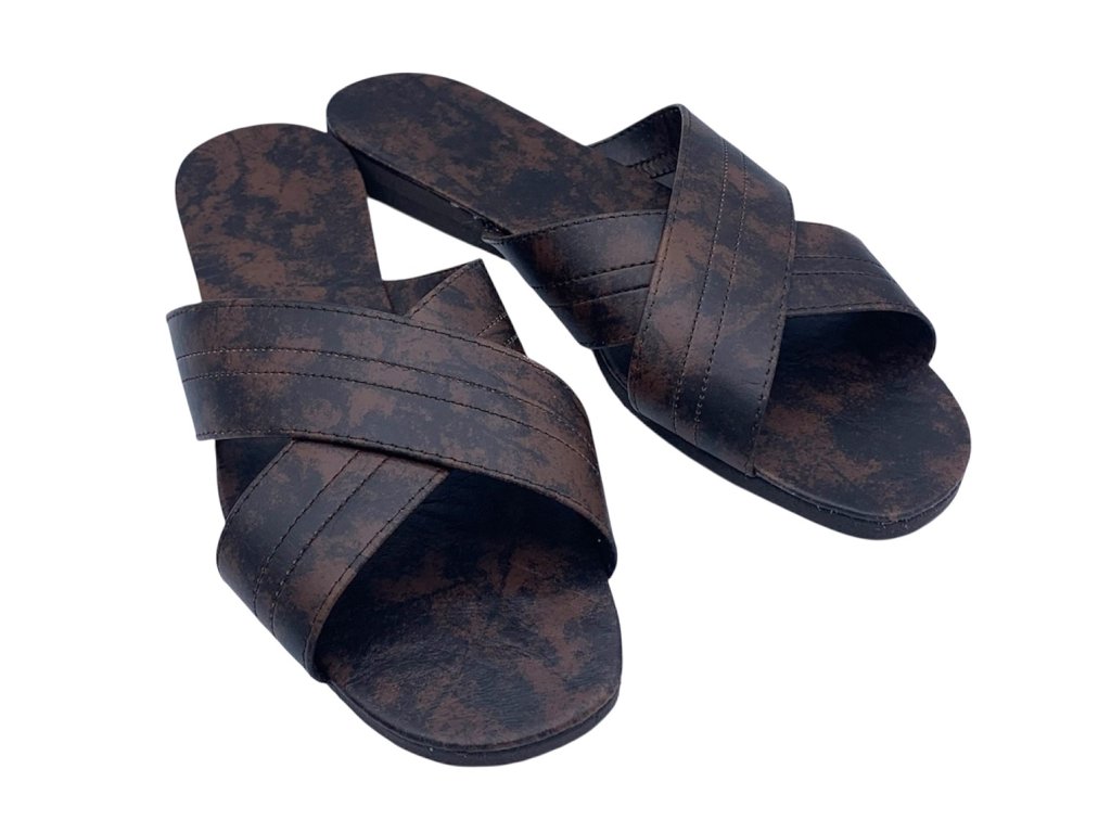 Jedná se o pantofle tzv. vojenské s otevřenou špičkou a s nártovým překřížením.
