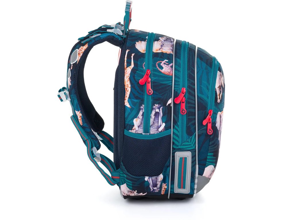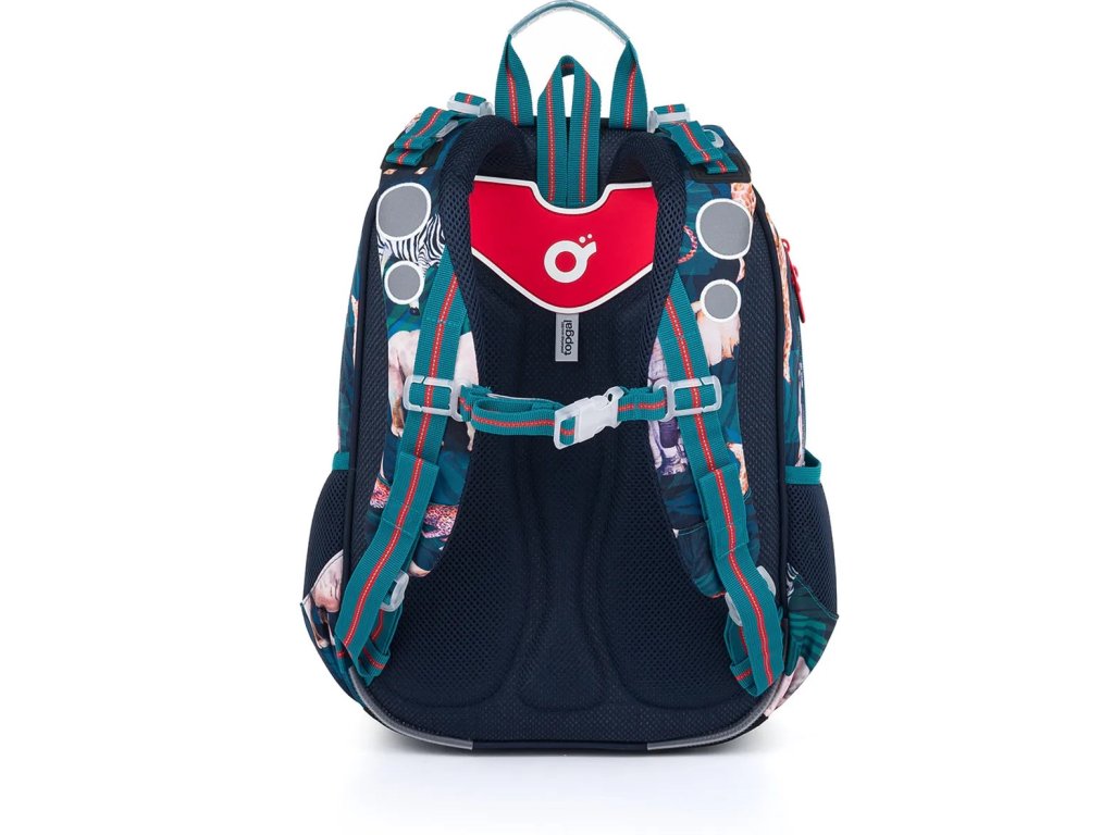 - Batoh má dvě objemné hlavní komory. Zadní komora je širší - doporučujeme k zádům dávat nejtěžší učebnice nebo desky na sešity. Přední komora je o něco užší a je v ní umístěna ještě malá síťová kapsa na zip a jmenovka.